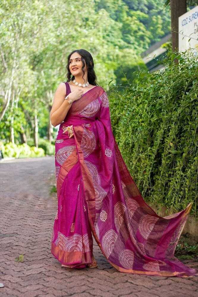 TUSSAR SILK SILK JARI BORDER SAREES WITH BLOUSE